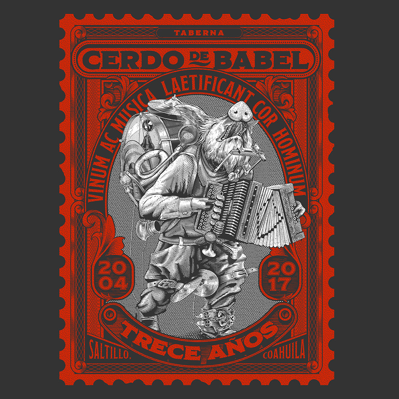 Buena música, amigos, comida, arte y la cerveza de barril mas fría que te puedas imaginar, hacen del Cerdo de Babel uno de mis bares favoritos y tuve el honor de diseñar la playera para su 13 aniversario.